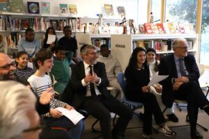 Au collège Maurice Utrillo, les élèves ont pu dialoguer avec Julie Benetti, Rectrice de l’Académie de Paris, Éric Lejoindre, Maire du 18e arrondissement, ainsi qu’avec plusieurs responsables de culte. Cette rencontre, particulièrement riche, a mis en lumière le travail engagé de l’équipe éducative. Elle s’est prolongée par la découverte de l’exposition « Cité laïque », créée par notre Fédération, et lauréate du prix Laïcité 2021.