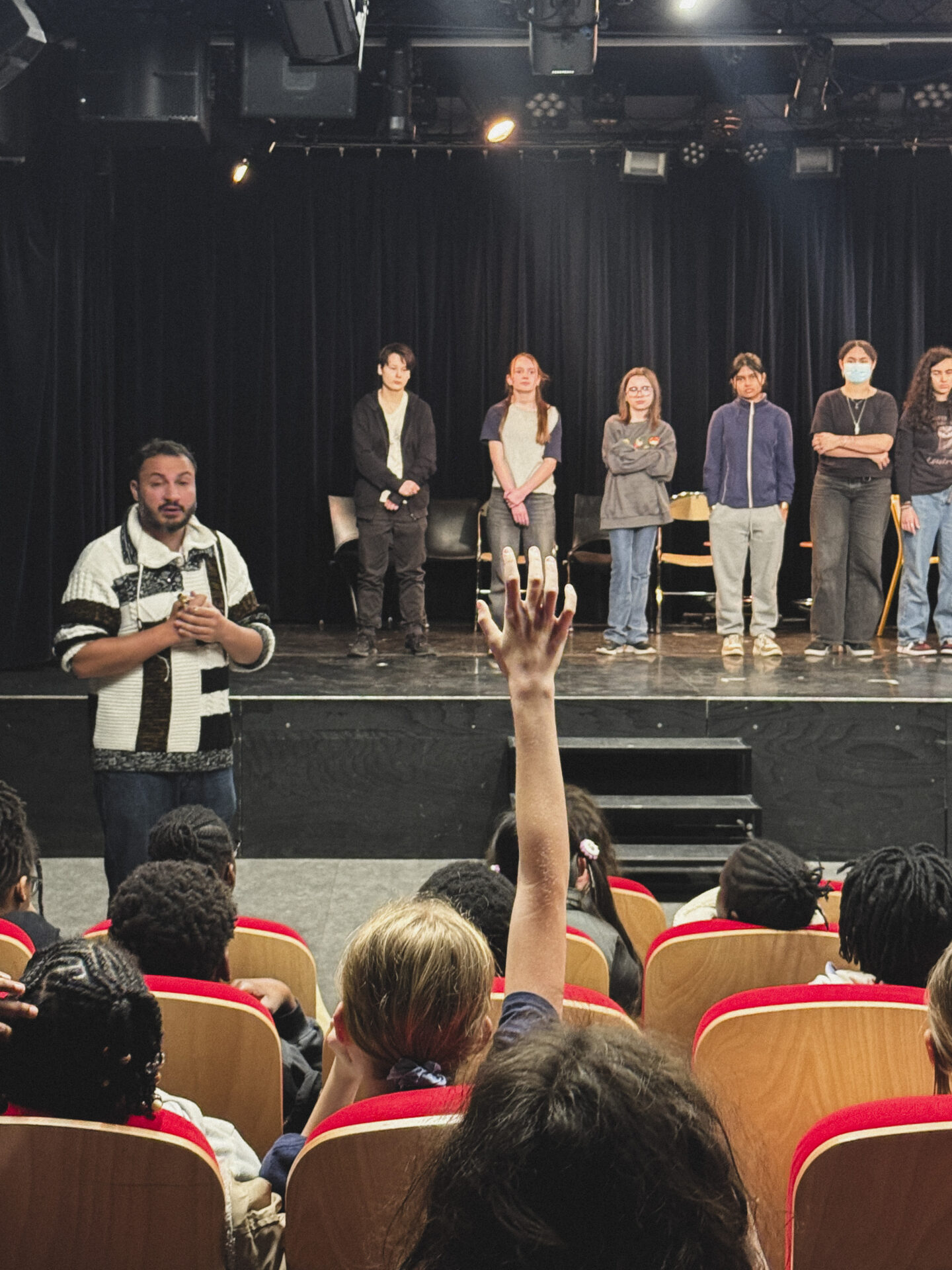 Ensemble, ils continuent de faire vivre un principe fort : faire des jeunes les véritables acteurs de la sensibilisation à travers du théâtre forum et la formation d’ambassadeur·rices. Le Centre Paris Anim’ Rébeval a joué un rôle essentiel dans la mise en œuvre du projet. En favorisant le lien avec l’association Le Social Crew, il a permis aux jeunes de bénéficier d’un accompagnement professionnel pour traduire leurs idées en actions concrètes. Une semaine de résidence a été organisée pour concevoir les interventions, articulant jeux de rôles, mises en situation inspirées du vécu des collégien·nes et échanges autour de thématiques telles que le harcèlement, les stéréotypes et les discriminations. Ces temps d’expression sont devenus de véritables espaces d’échange où la parole circule librement et où les élèves ne sont plus seulement spectateur·rices, mais acteur·rices pleinement engagé·e dans la réflexion .